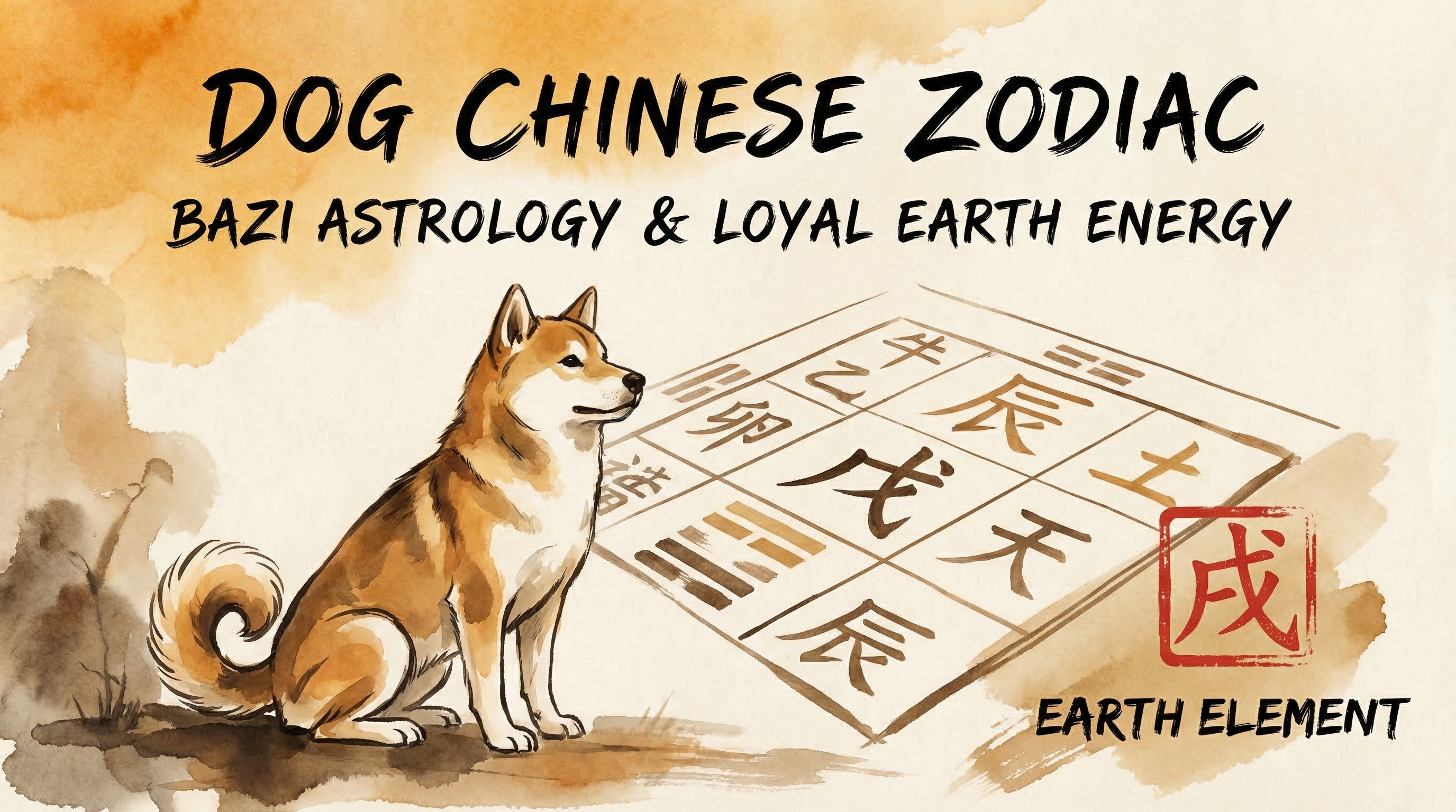 Explore the Dog (Xu 戌) in BaZi — Yang Earth with hidden fire storage. Learn its personality, career paths, relationships, clashes, combinations, and health.