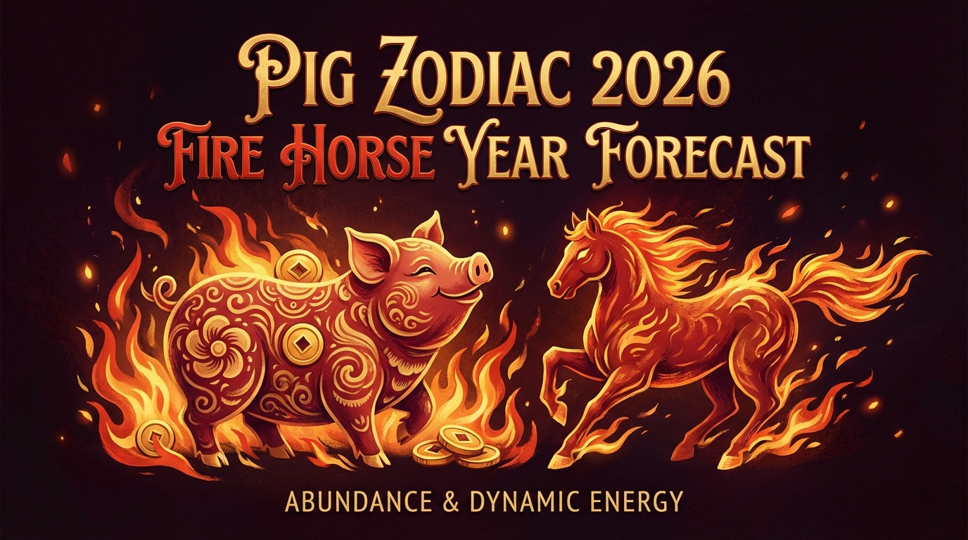 The Pig's Water energy provides natural buffering in the 2026 Fire Horse year. Discover career opportunities, relationship dynamics, and how Pig people navigate the year's intensity.